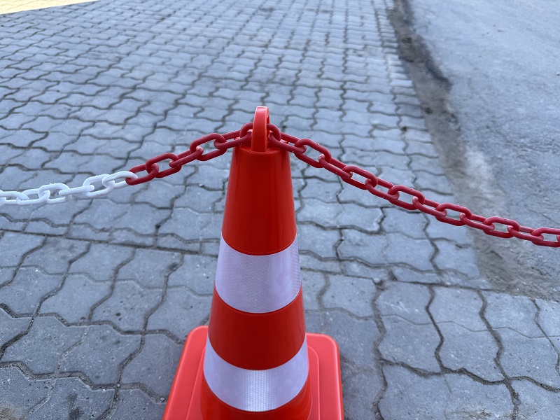 Keglen er stabil og kan stables ved transport og opbevaring, hvilket gør den praktisk i brug på byggepladser, vejarbejde eller arrangementer. Den har desuden en smart holder på toppen, så den kan flyttes med en finger. Desuden kan holderen benyttes til vores plast afspærringskæde, så du nemt kan sammenkoble flere kegler ved behov.
